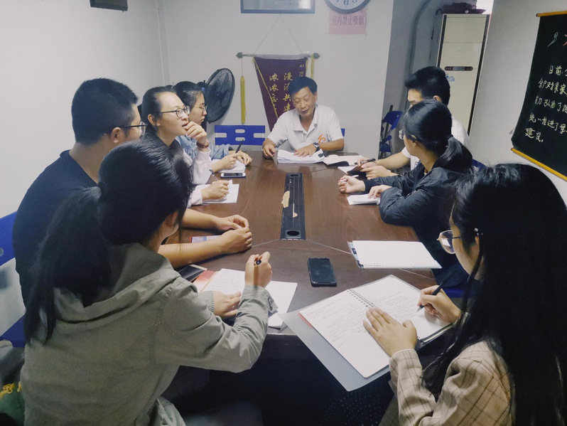 四五平方米的小房间里,堆满了各类书和报纸,墙上挂着一块块写着党的路线方针政策、国家法律法规和养生保健知识的小黑板。在会议室,黄老师从“学理论有收获”、“思想政治受洗礼”、“为民服务解难题”、“清正廉洁当表率”四个方面出发,强调一名中国共产党员的初心和使命,并结合实际工作,分享了退休二十多年来投身社区建设、参与志愿服务的经历,鼓励党支部的同学们努力学习,积极工作,为社会、为校园传播更多正能量,在平凡的人生和岗位中干出不平凡的业绩。交流结束后,文学院2017级本科党支部的同学与黄老师共同绘制了党建宣传黑板报。