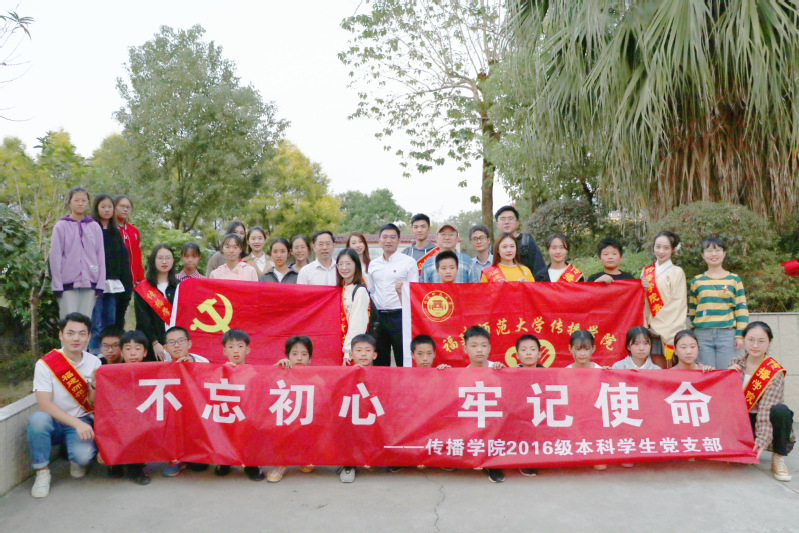为了响应全党开展的“不忘初心、牢记使命”主题教育,推动学生党员更加自觉地为实现新时代党的使命不懈奋斗,发挥学生党员的模范作用,11月6日,传播学院2016级本科学生党支部组织师生党员前往福州市闽清县东桥镇义由村,开展“不忘初心、牢记使命”主题党日活动。活动旨在深入脱贫攻坚第一线,了解扶贫村新村建设情况,关爱贫困家庭和贫困学生,践行党员义务,牢记共产党员的初心和使命。传播学院党委刘舒平书记、院关工委主任彭曙光教授和2016级辅导员郭虎一同参加了本次活动。