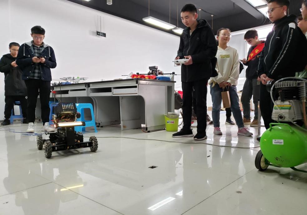 首先,同学们来到了学院RoboMaster机器人实验室和电子协会实验室参观,精巧的机器人模型、精细的设计图纸、专业的实验器材,都让同学们感受到学院浓厚的科技创新氛围。在机器人协会党支部成员的讲解和示范下,同学们亲身体验操控了步兵机器人、3D立体打印机、无人机等科技产品,近距离感受了科学技术的魅力。