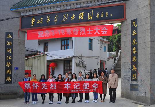 怀着对革命先烈无比敬仰的心情,党支部成员来到了位于长乐营前大象山麓的东屿革命烈士陵园。党员们共同参加了隆重庄严的烈士纪念大会,从老同志与烈士家属的讲述中,了解到林坡(原协和大学学生,师大前身校校友)等7位革命英烈在解放前夕为了革命事业先后惨遭国民党残忍杀害的英勇事迹。随后,党员们来到纪念碑前向瞻仰烈士并敬献鲜花表达哀思。祭奠仪式结束后,党员们参观了七烈士事迹纪念馆,详细了解革命先烈的光辉事迹。