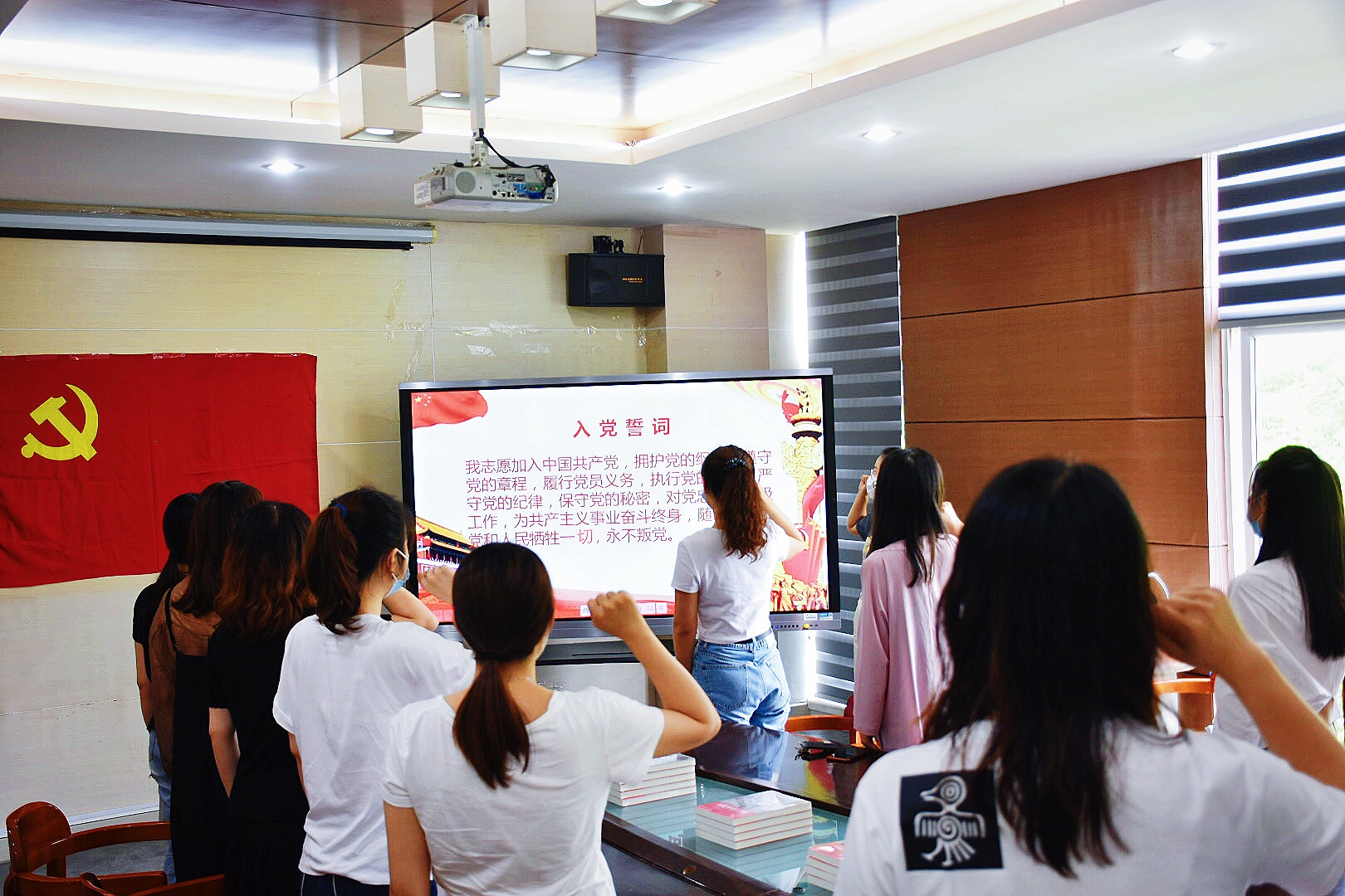 最后,支部书记黄日群同志带领毕业生党员面向党旗庄严宣誓,重温入党誓词。
