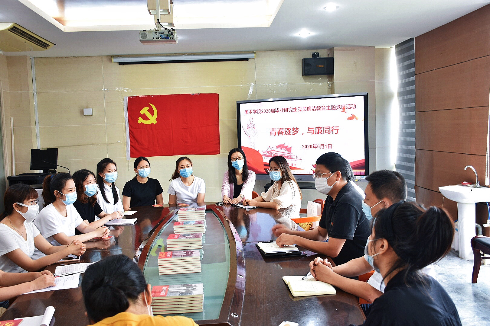 为进一步加强毕业班党员离校前教育,增强廉洁自律意识,6月1日下午美术学院2020届毕业研究生党支部开展了“青春逐梦,与廉同行”为主题的廉洁教育主题党日活动。学院党委书记赵立新、副院长罗礼平、副书记乐有方和研究生辅导员周吉珍作为特邀代表,与2020届毕业研究生党支部党员共同参加了本次活动。会议由党支部书记黄日群同志主持。
