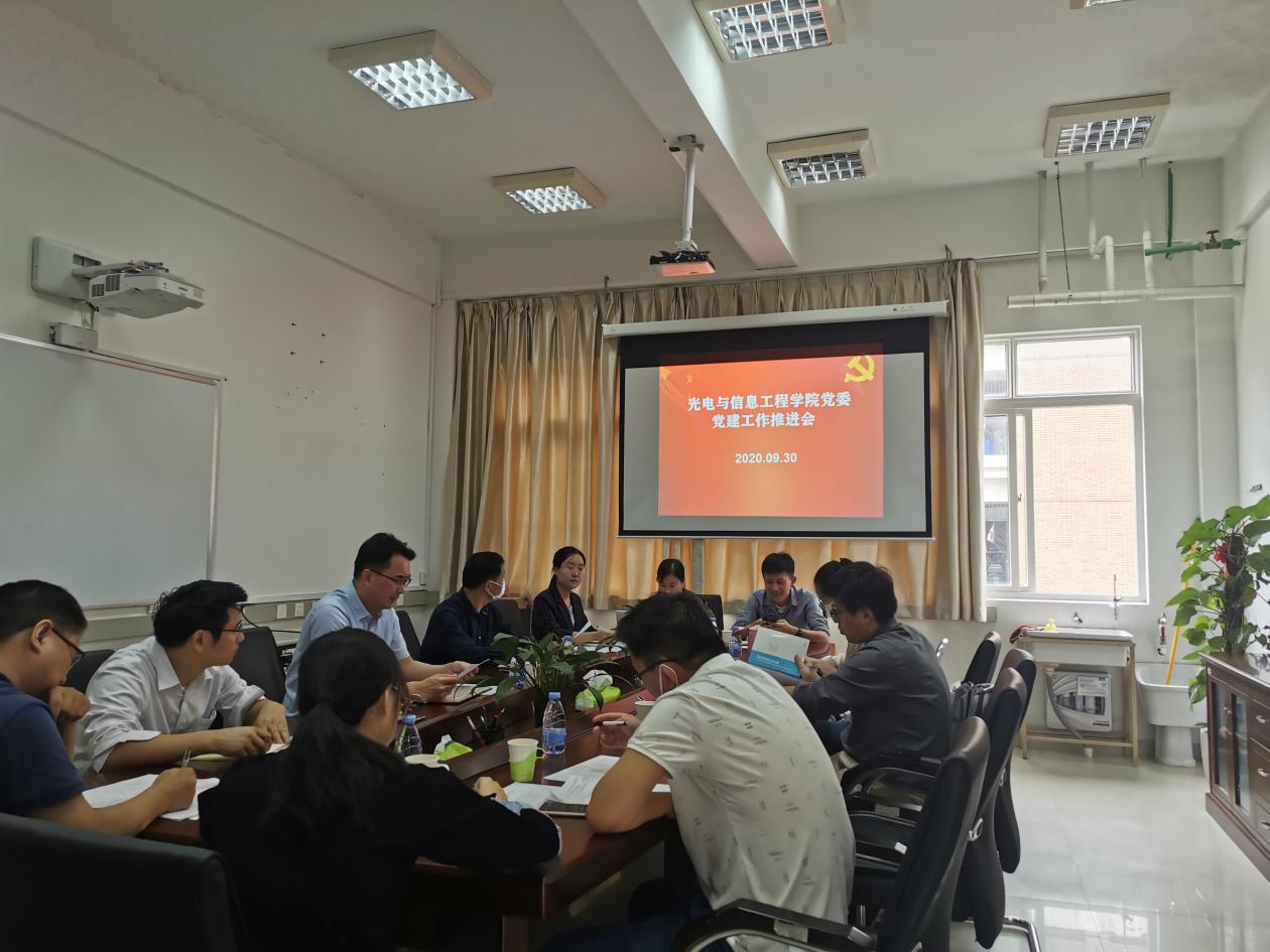 9月30日上午,光电与信息工程学院党委在理工3#307召开党建工作推进会。学院党委书记、副书记、组织员、师生党支部书记、全体辅导员共计20余人参加了会议,会议由侯建雄书记主持召开。