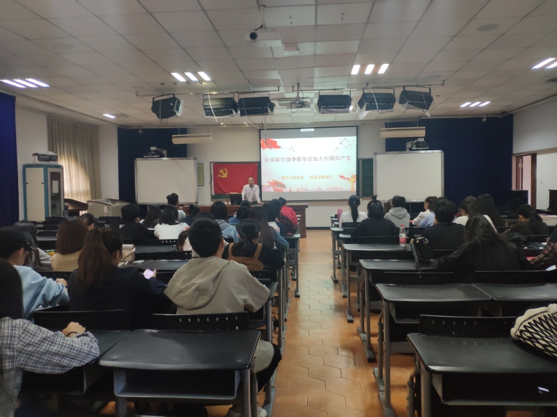 10月28日下午,音乐学院第52期入党积极分子培训班在教学楼205教室举行。本次培训班共有50多名入党积极分子参加了培训。院党委陈金章副书记在开班仪式上作了讲话。开班仪式由2018级辅导员陈珍老师主持。
