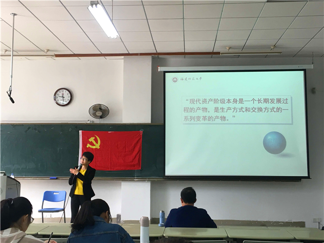 10月20日上午于立诚1-106,马克思主义学院副院长、博士生导师、校党委讲师团成员杨林香教授应邀为学院全体党员、入党积极分子作题为《共产党宣言》解析的专题讲座。杨林香教授分别从《共产党宣言》的诞生背景、序言解析、宣言的重要性与局限性、宣言的现实借鉴意义等方面入手,用学员们熟悉的身边小事举例,结合文学作品和历史事件对宣言进行解析,让学员们真切地感受到宣言的理论深度与社会根源。