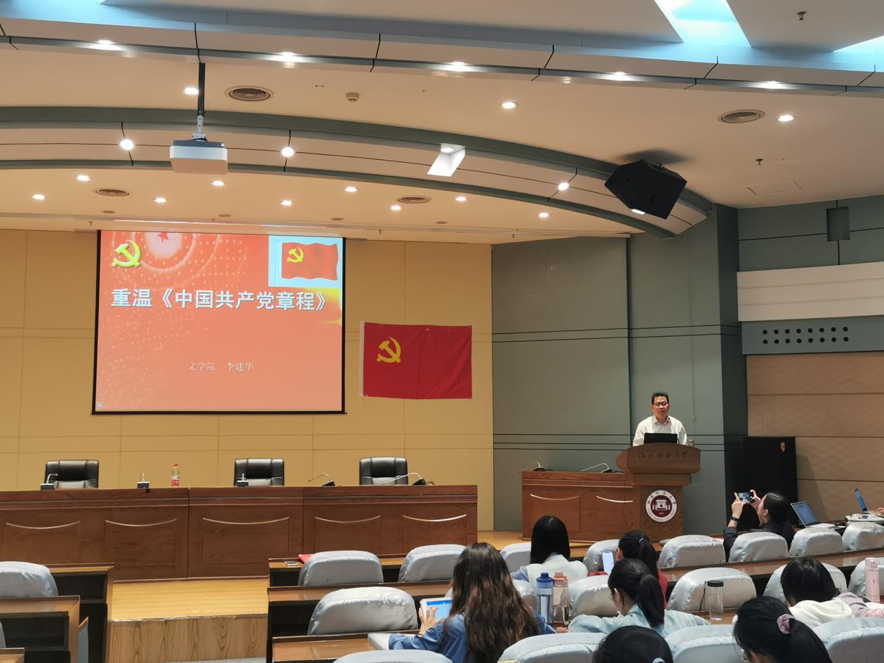 开班式结束后,李建华书记为本期入党积极分子讲授本次培训班的第一课《重温<中国共产党章程>》。