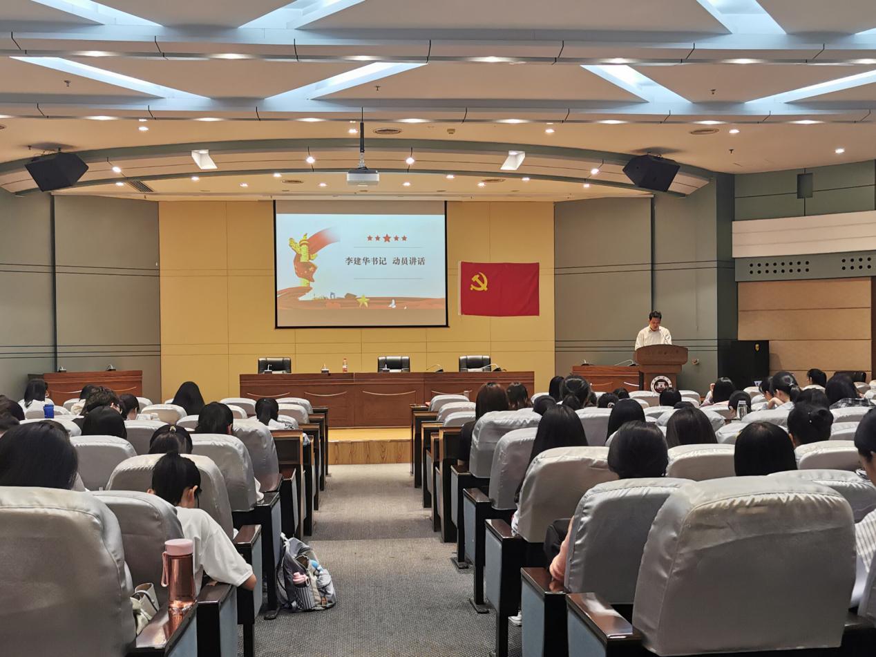李建华书记做动员讲话,他首先对参加本次入党积极分子培训班的学员们表示欢迎,并对他们积极向党组织靠拢表示支持。同时,对学员们提出了建议与期望,希望学员们能够深入学习“四史”,筑牢思想的高地,保持学习的热情,紧跟时代的步伐,勇担青年的使命,把“全心全意为人民服务”铭记于心,实践于行。随后,董倩雯老师对本次培训班的计划安排、考勤制度和注意事项做了补充,对学员们的学习、实践、工作态度等提出了相应要求。