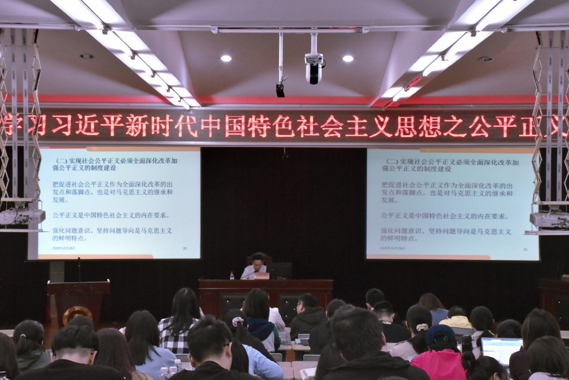 2020年10月28日下午,法学院党委李锋书记在模拟法庭为学院青年学生,讲授了一堂以“守护公平正义,争当德法兼修的当代大学生——学习习近平总书记关于公平正义的重要论述”为主题的党课。法学院各年级辅导员,全体学生党员、入党积极分子共同参加。