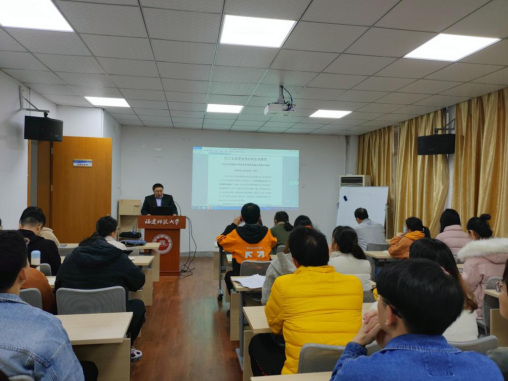 12月14日下午,环境科学与工程学院在仓山校区实验中心二楼多媒体教室举行党的十九届五中全会精神学习会,并邀请经济学院张国教授作《一切为了农民更加美好的生活——从家庭联产承包责任制到实施“乡村振兴”战略》专题讲座。本次讲座由院党委副书记张坤其主持。