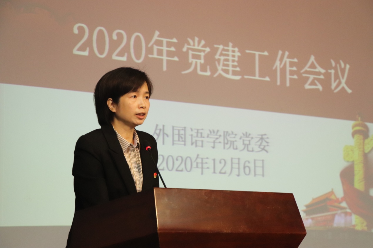 2020年12月6日上午,外国语学院党委在陈明金楼多功能厅召开2020年党建工作会议。校党委组织部组织科科长钟蕊博士,学院党委书记章琳、副书记李启辉,党委委员林志达、林明金、闫小斌、王文协,兼职组织员陈焕球以及各党支部书记和支委等70多人出席了会议。会议由学院党委组织员王文协主持。